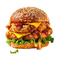 Juicy grilled chicken patty with fresh veggies and tangy sauce, layered in a soft bun.